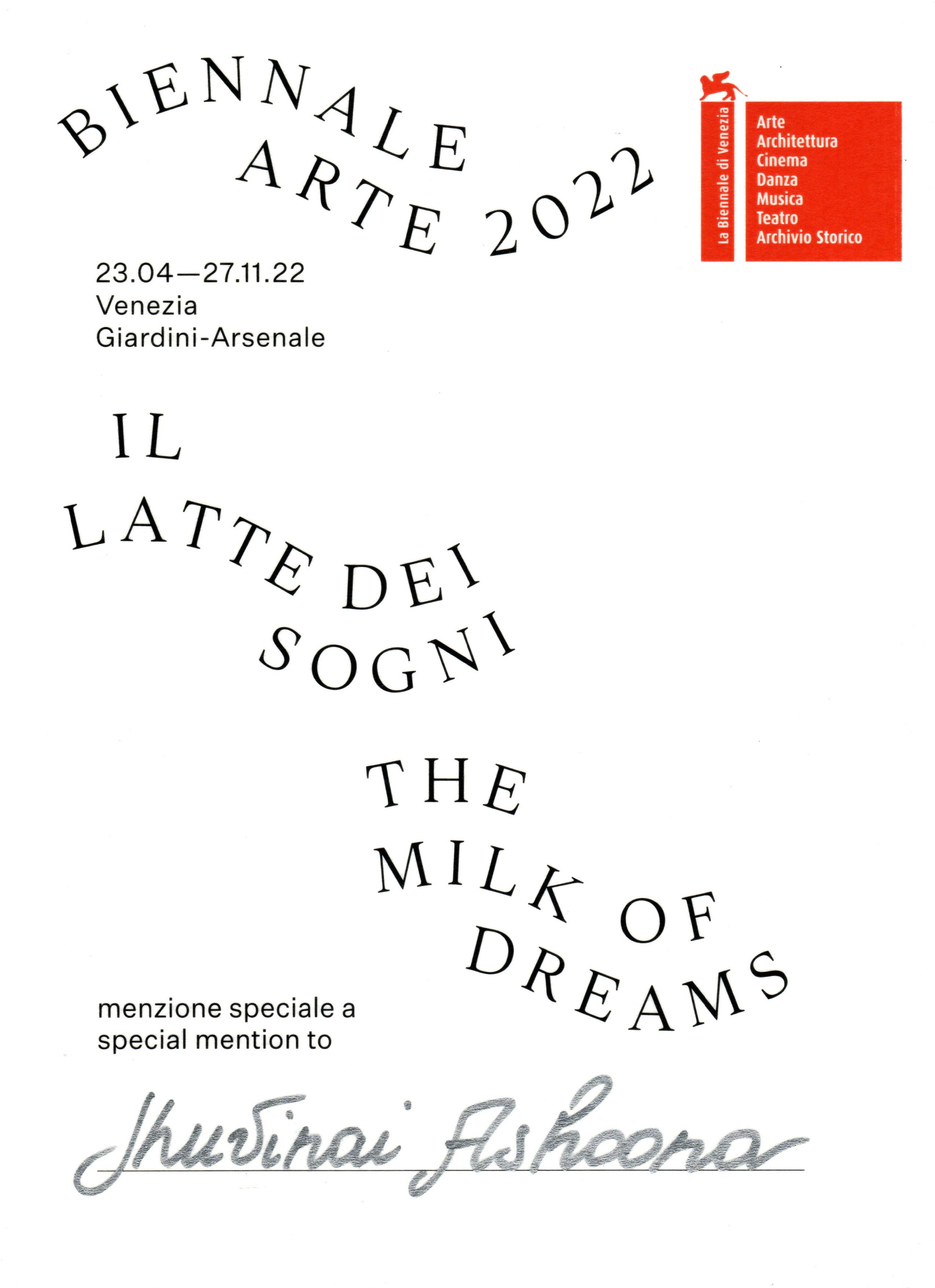 The Awards Ceremony of the 59th International Art Exhibition took place today, April 23rd, 2022, at Ca’ Giustinian. Upon recommendation of the Curator of the 59th Exhibition Cecilia Alemani, the board of La Biennale di Venezia, chaired by Roberto Cicutto, also awarded two Golden Lions for Lifetime Achievement to German artist Katharina Fritsch and the Chilean artist Cecilia Vicuña. Other award recipients included: