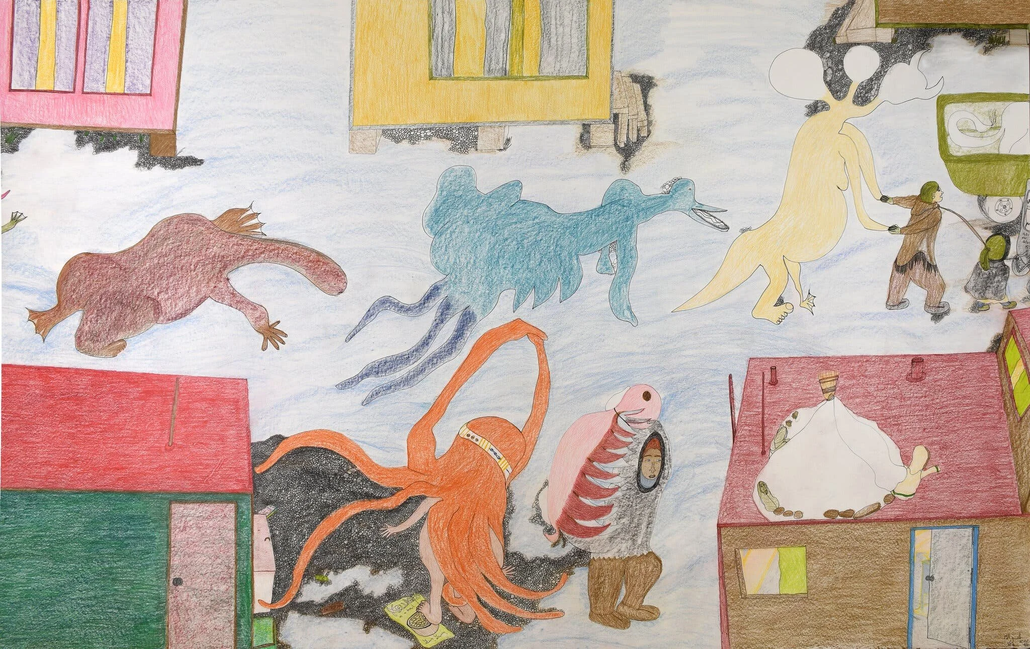 “Shuvinai Ashoona reveals in her drawings and paintings a profundity of indigenous Inuk cosmogonies. An existence in which species are interdependent on each other, and which is not mediated by the coloniality of power of the human species. Acknowledging the violences of the colonial enterprise, Ashoona, in her work proposes possibilities of escaping the cul-de-sac by listening in, listening back and listening forward to indigenous knowledge.”— Jury of the 59th International Art Exhibition